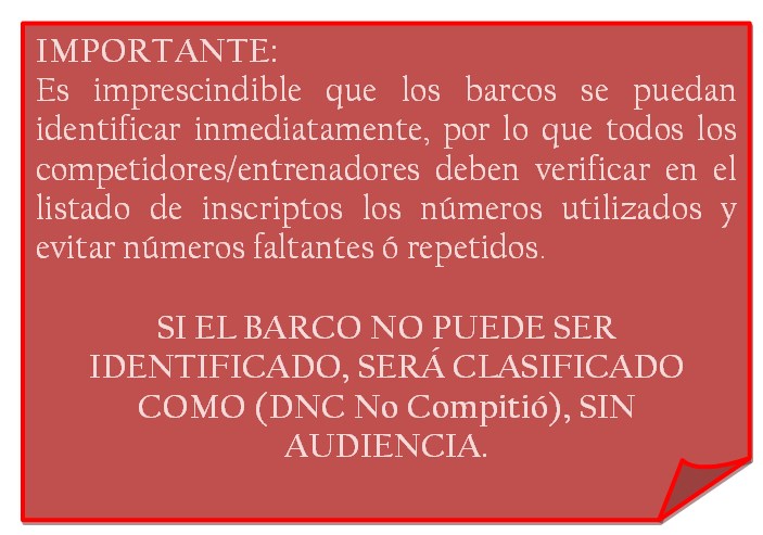 No se considerará abonada la inscripción hasta que el participante haya recibido una respuesta de confirmación de recepción, desde la casilla de regatas@yco.com.ar